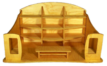 Gegenüber dem Kaufmannsladen Junior, besitzt der Kaufmannsladen 2 Schaufensterwände mit kleinen Tischen für die Warenpräsentation, der Fronttisch ist minimal kleiner.