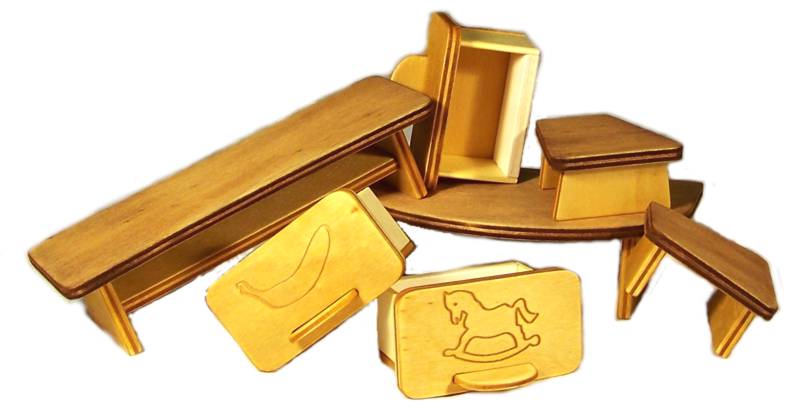 Auf dem Bild Lucky 4 : Pappel komplett mit farbigen Lasuren, geschliffen und geölt. (219,00)