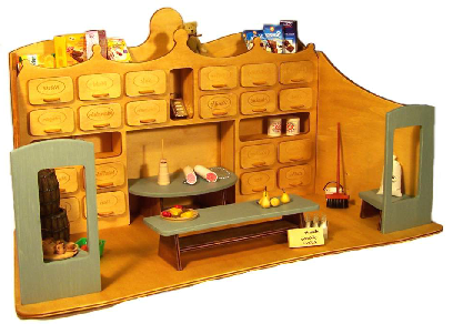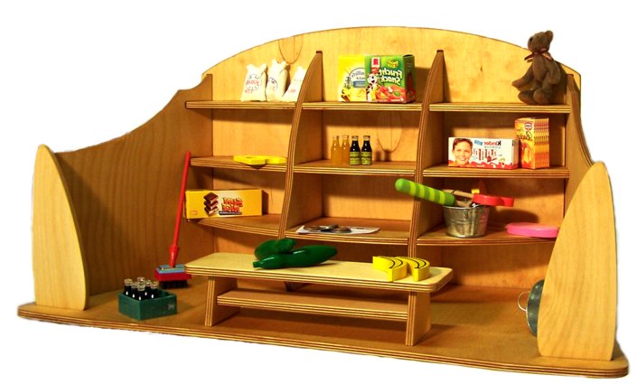 Mit dem Kaufmannsladen wird eine Basis bereitgestellt um mit Spaß und Freude Erfahrungen im sozialem und menschlichem Umgang durch Rollen- und Gruppenspiele zu sammeln. Kreative Förderung durch vielfältige Gestaltungsmöglichkeiten der Präsentation werden geboten.